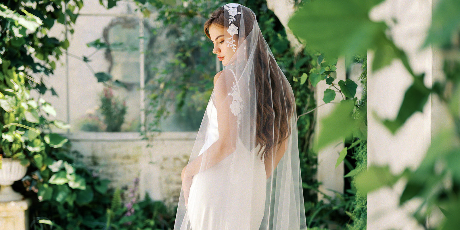 Our wedding veil collection includes one tier and two tier/blusher veils (elbow, hip, fingertip, waltz, floor, chapel and cathedral lengths) with styles ranging from the classic raw edge veils made with different types of fine-quality tulle, the 1920s inspired romantic Juliet cap veils, traditional Spanish style Mantilla lace bridal veils, ones with pearl and Swarovski crystal decorations, floral (handmade silk flowers) veils and more.