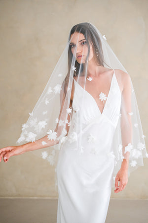 ARIANA II | Drop Veil with Chiffon Flowers