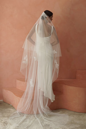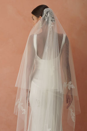 The veil is attached to a 3.5"/8.5cm wide metal wire comb.