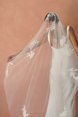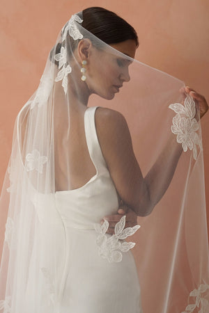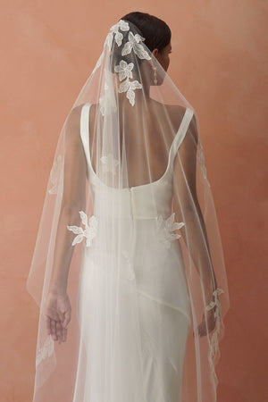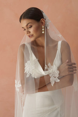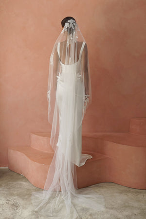 The veil is attached to a 3.5"/8.5cm wide metal wire comb.