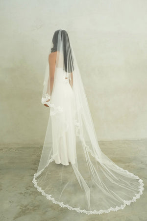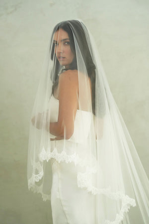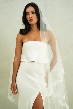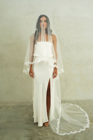CLAUDIA II | Drop Veil with Lace Trim