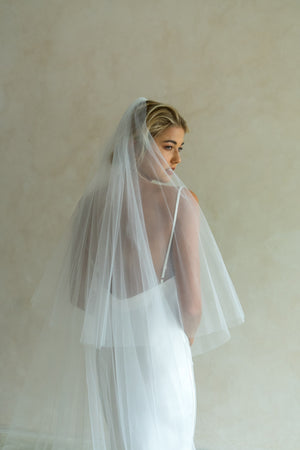 Standard blusher 31"/80cm. The top tier (blusher) can be worn over the face.