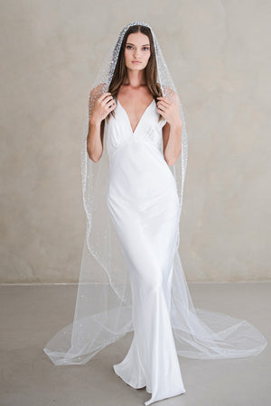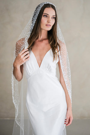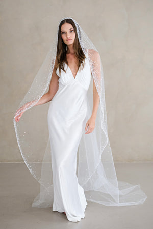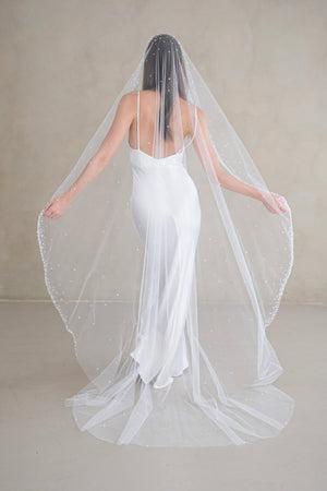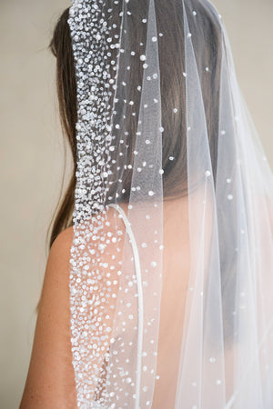 One-tier veil with faux pearl beads & sequins (handsewn).