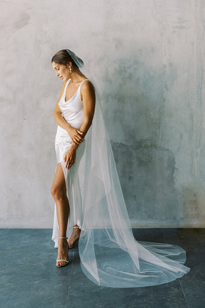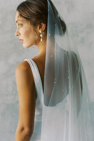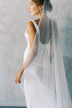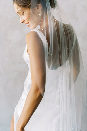 The AVA I Veil provides a timeless look for a modern bride. Crafted with delicate pearls for a hint of sparkle, this one-tier veil will take your bridal ensemble to the next level. Make a statement on your special day!